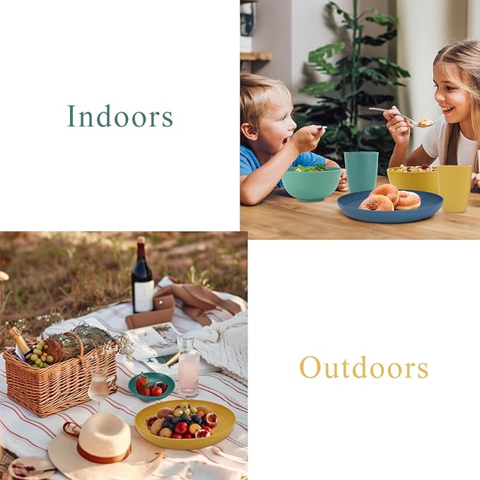 - โฆใ๐๐๐ง๐จ๐๐ฉ๐๐ก๐ ๐๐จ๐๐๐ใ- Suitable for all ages, these wheat straw dinnerware sets are perfect for various occasion, such as parties, picnics, camping, and everyday meals at home, school, office, or while traveling. Lightweight and unbreakable,they are ideal tableware for kids.