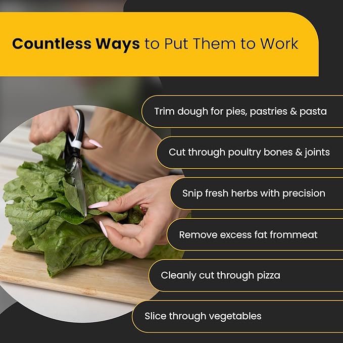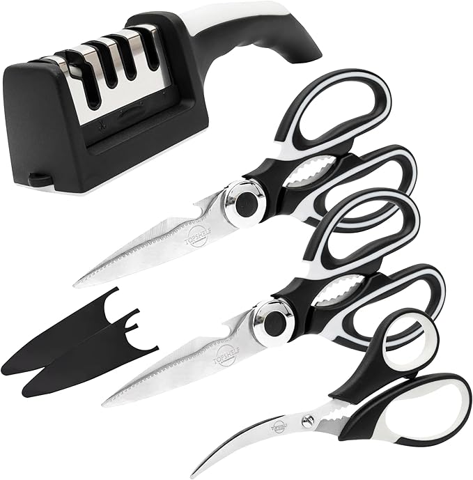 - Your Shears & Knives Will Stay Razor-Sharp: You're not just getting a trio of kitchen shears for food; we also added in a scissor and knife sharpener tool to ensure your scissors and knives are always ready to rock, making every cut smooth and effortless
