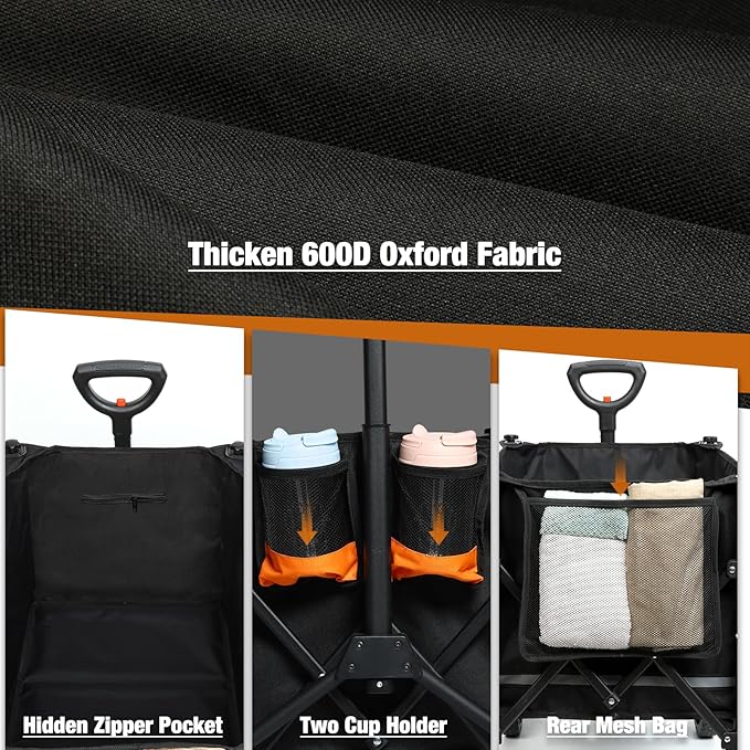 - MULTI POCKETS: Made of double-layer, waterproof, tear-resistant 600D nylon Oxford, and can be quickly removed from foldable wagon when you clean it. Built-in an inside zipper pocket, a rear mesh pocket for valuables or small items, and two cup holders for your water bottles.