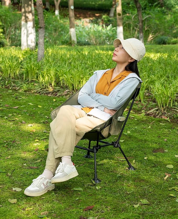 - Ultralight but heavy duty, made of aerospace-grade aluminum alloy 7075 and 600D ripstop oxford, only 2.2 lbs (without the large detachable feet, four feet 0.2 lbs), supports up to 330 lbs; The webbing on the back makes the chair last many years without sinking; All 4 corners at the back of seat fabric are reinforced (Bartack Sewing) to ensure reliability; Corrosion-resistant, easy to clean