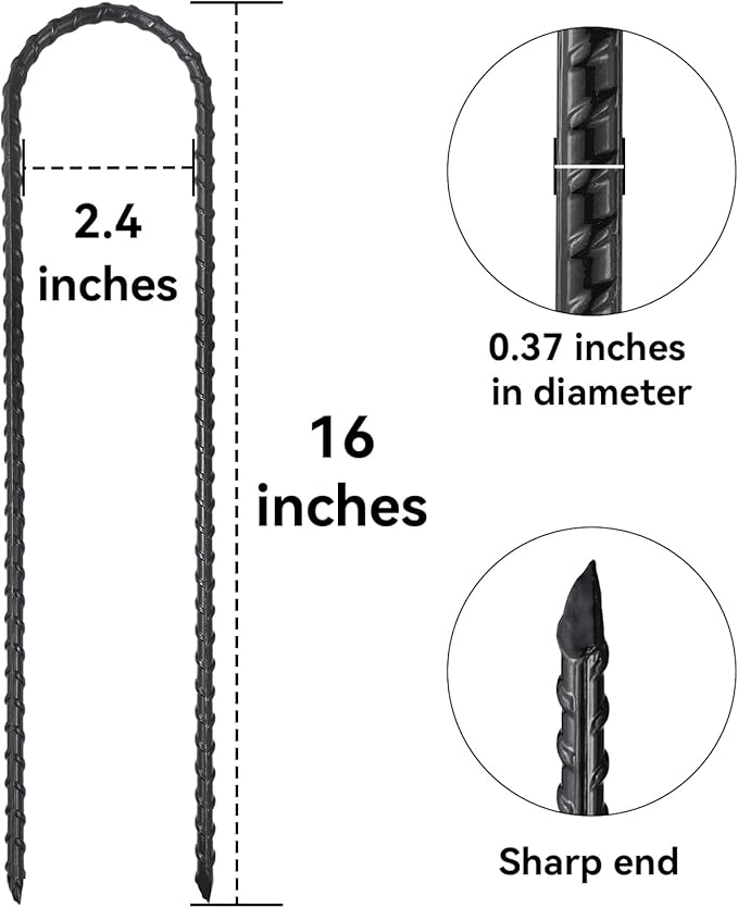16 Inch Trampoline High Wind Stakes Heavy Duty Ground Anchors U Rebar Stakes for Trampoline, Dog Fence (24 Pack)