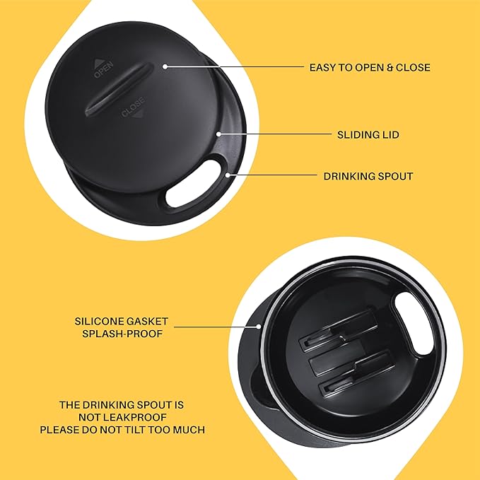 - Special Feature : Condensation Resistant, Double Wall, Sliding Lid, Spill Proof, Vacuum Insulated