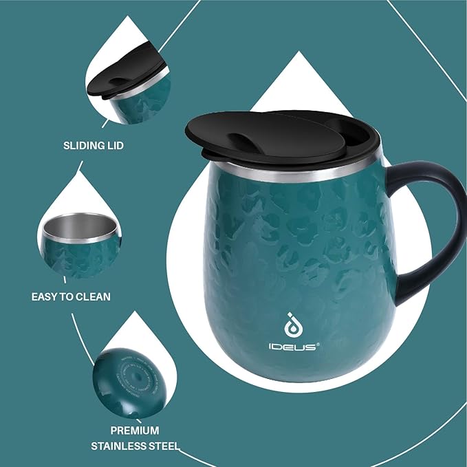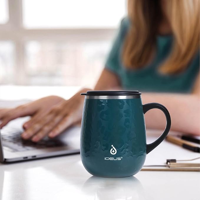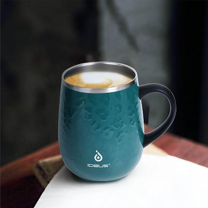 - 【VACUUM INSULATION】- IDEUS 16 oz coffee tumbler is made from 18/8 stainless steel. Advanced double-wall vacuum insulation technology can keep the temperature of beverages for up to 6 hours (hot) & 12 hours (cold).