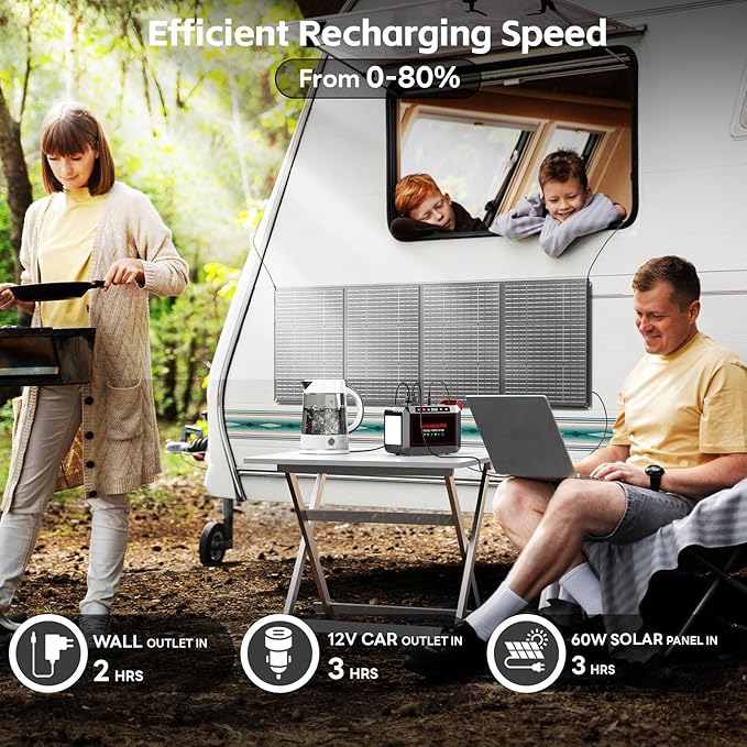 MARBERO 237Wh Solar Generator with Solar Panel Included Portable Power Station 300W Pure Sine Wave with Foldable Solar Panel 60W Set for Camping Outdoor Hiking Fishing Emergency