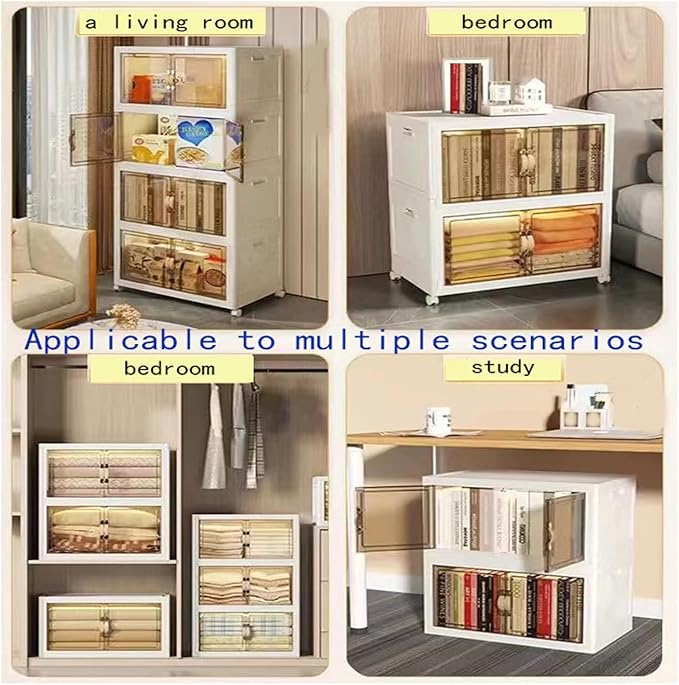 64 Gallons Storage Bins with Lids - Folding Storage box with Doors and Wheels, Collapsible Plastic Storage Bins for Closets, Stackable Storage Organizer (Large-4Tier)