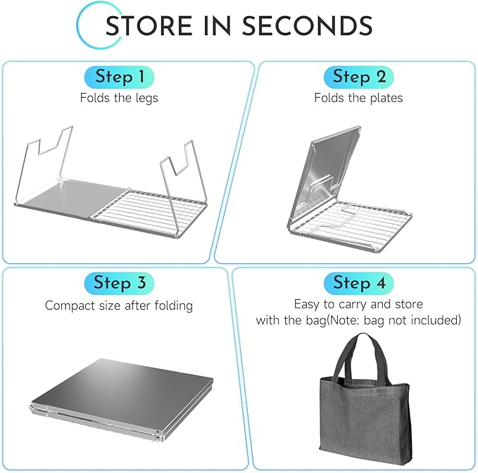 - Durable&Compact: Made of high quality iron with strong legs. This portable folding camping grill is carefully designed to take into account the space and portability, made into a folding design, will not take up too much space, after use, fold up and take away