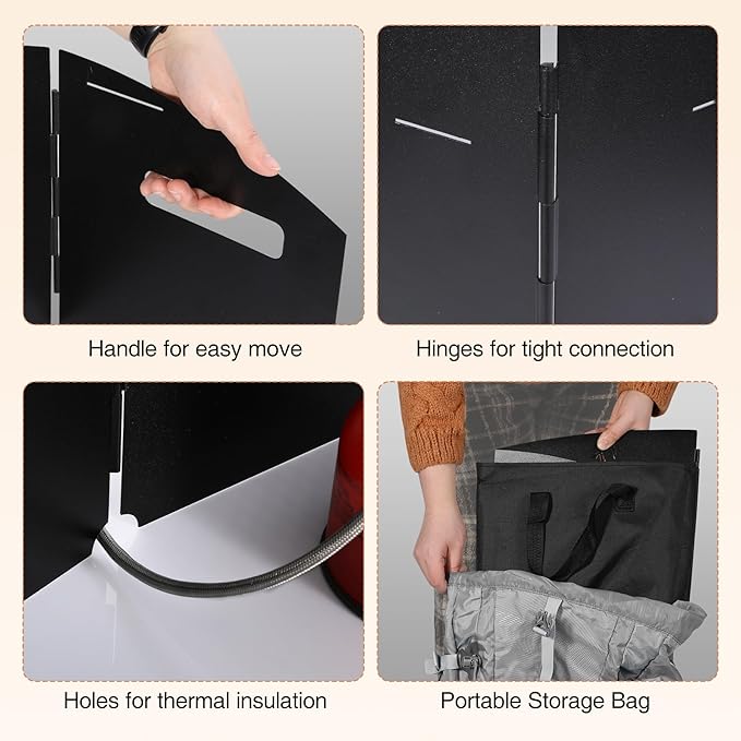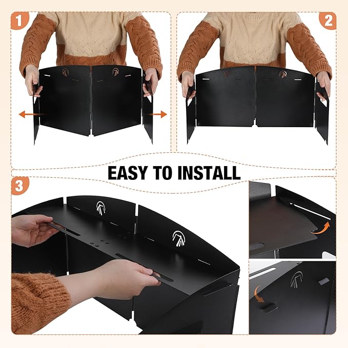 - Heavy-Duty 4-Panel Iron Windshield Crafted from 0.8mm thick iron plates, this windscreen’s interlocking 12”H x 10”W panels create a stable three-sided barrier against 30+ mph winds. The rust-resistant steel structure prevents tipping while maximizing fuel efficiency—reduce cooking time by 40% in harsh outdoor conditions.