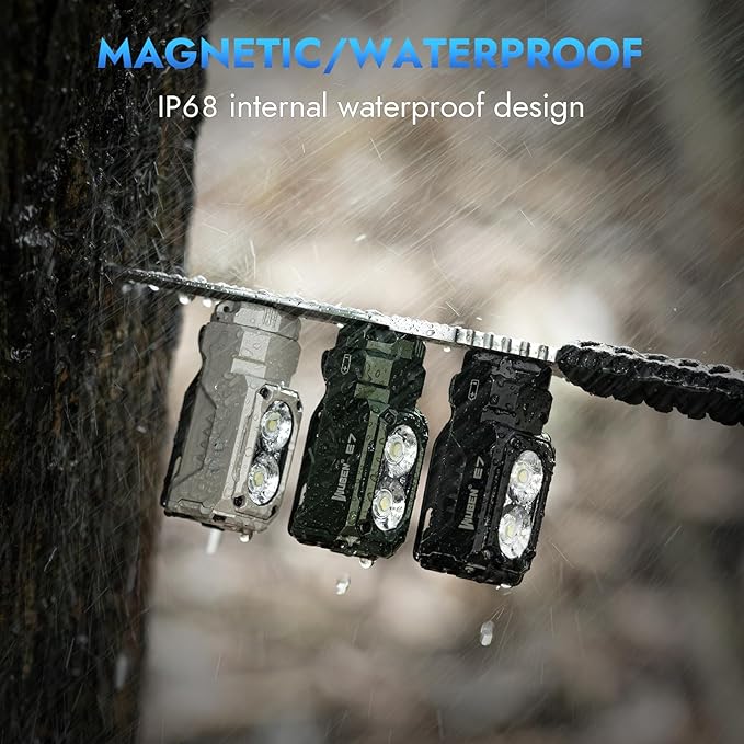 - MULTI-FUNCTION EDC FLASHLIGHT: WUBEN E7 flashlight is an EDC flashlight with a strong magnet on the bottom to firmly hold iron objects, also has a hugging clip on the back to easily attach it to jacket pockets, backpacks, gears, waistbands; you can also put it into the headlamp clip (not included) to use it as a headlamp; you can plug in a Typ-c cable to control the use of the flashlight through the gesture remote sensor (not included), it's easy to carry and simple to use;