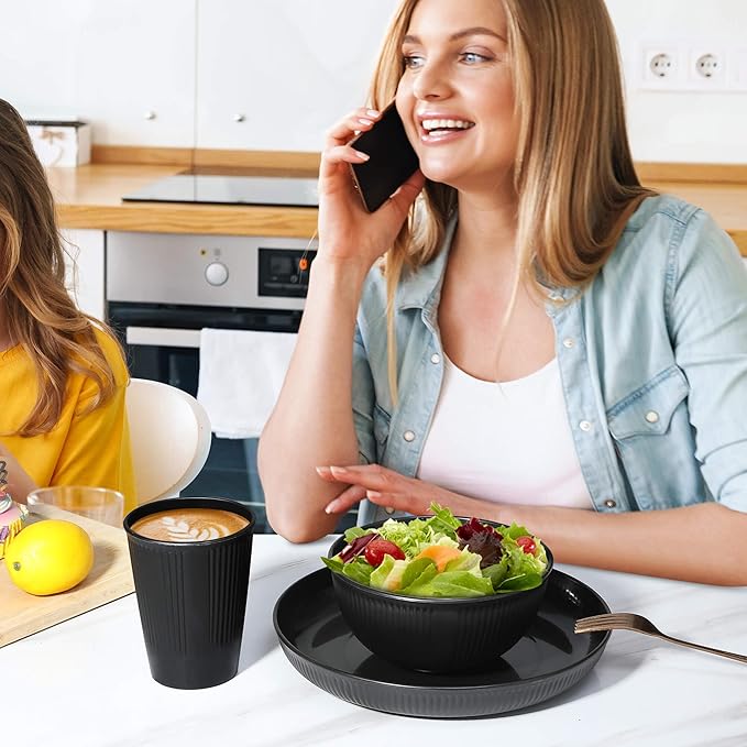 Wheat Straw Dinnerware Sets, Kitchen Unbreakable Wheat Straw Plates and Bowls Sets for College Dorm Apartment Reusable Black