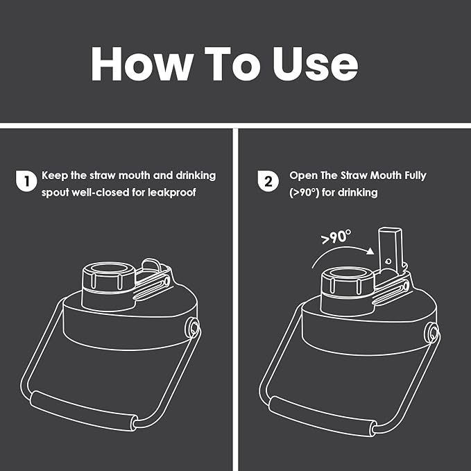 - Dual-use Lid:Our half gallon water bottle have a dual-use lid,not only you can drink through the straw lid directly but also can twist the cap to pour the water.What’s more,the big handle can help you go to sports conveniently