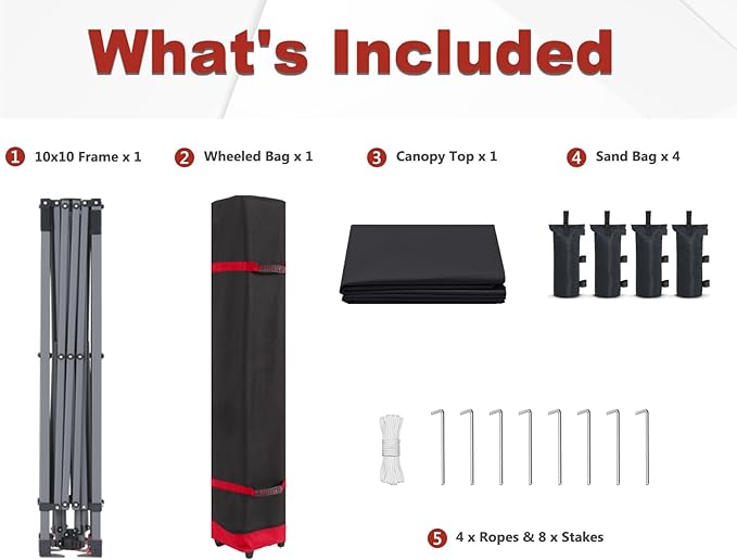 - 【MULTIPLE CHOICE】:ABCCANOPY pop up canopy available in 6.6x6.6ft, 8x8ft, 10x10ft or 12x12ft, multiple colors making them great for couples, families,or small gatherings in the backyard with friends. 【TIPS:please do not leave this canopy outside in wild weather, especially stormy weather, remove the top from frame and stored in the storage bag after dry】Check above to find the perfect fit for you!