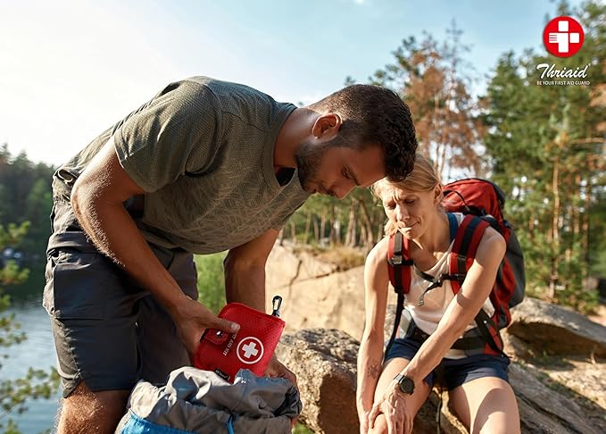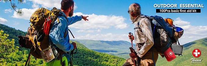 Small First Aid Kit, 100 Pieces Water-Resistant Well Organzied Pouch with Rotatable Buckle - Ideal for Outdoor, Travel, Biking, Camping, Hiking, Car (Red)