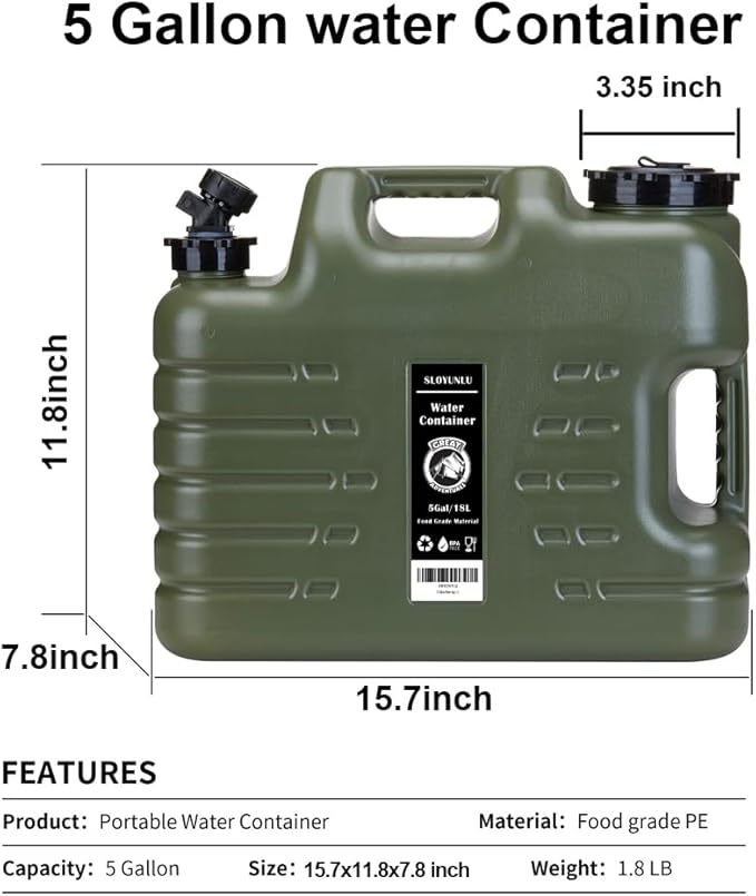 - Emergency Preparedness and Daily Use - This freshwater container is widely used for outdoor activities, camping, tailgating parties, picnics, hiking, backyard barbecues or other outdoor activities. Also Enables you quickly and safely store all the water your family needs in the event of an emergency or natural disaster