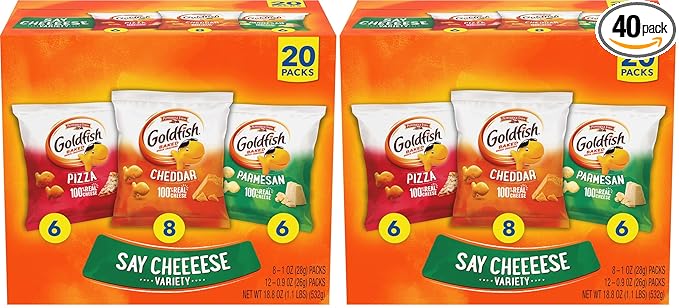 - Perfect for sharing: 20 count say cheeeese Goldfish variety pack lets friends and family choose their favorite flavor