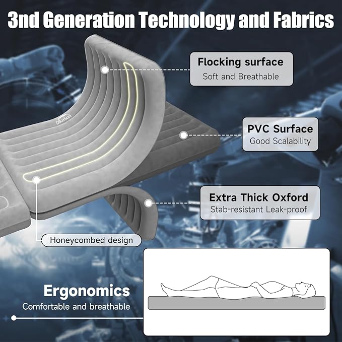 - 【Premium Fabric】Our car air mattress is made of thick flocking and premium PVC materials, ergonomic design, offering outstanding durability and waterproof performance, provide skin-friendly comfort to kids. The texture surface and sturdy construction make it shock absorption, The child's anti-drop design prevents your child or pet from falling into the front row while driving.