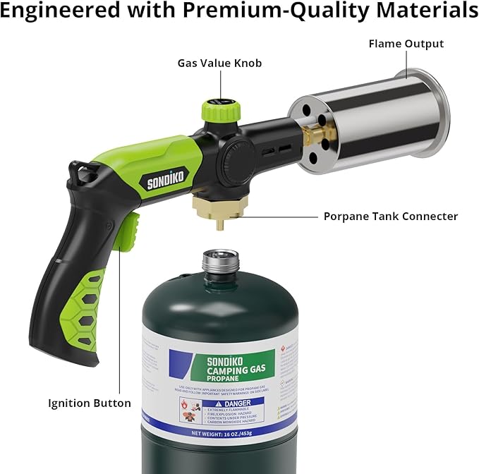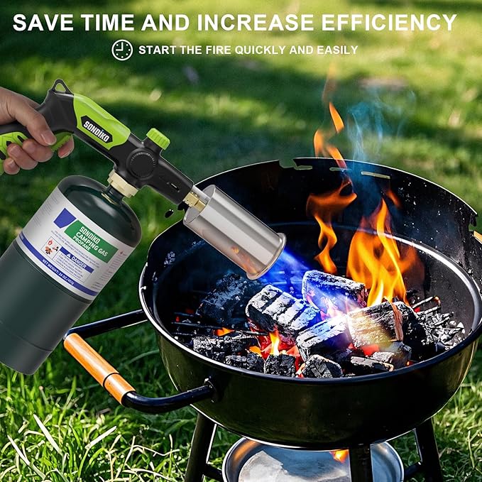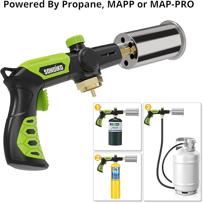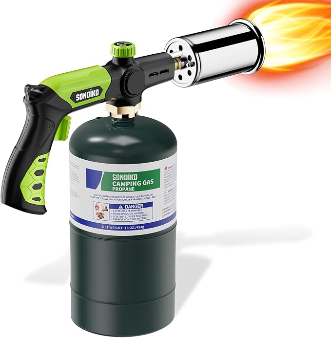 Sondiko Powerful Grill & Cooking Propane Torch L8010, Sous Vide, Campfire Starter, Adjustable Wood Torch Burner for Searing Steak, BBQ, Welding(Green & Black) Propane Tank Not Included