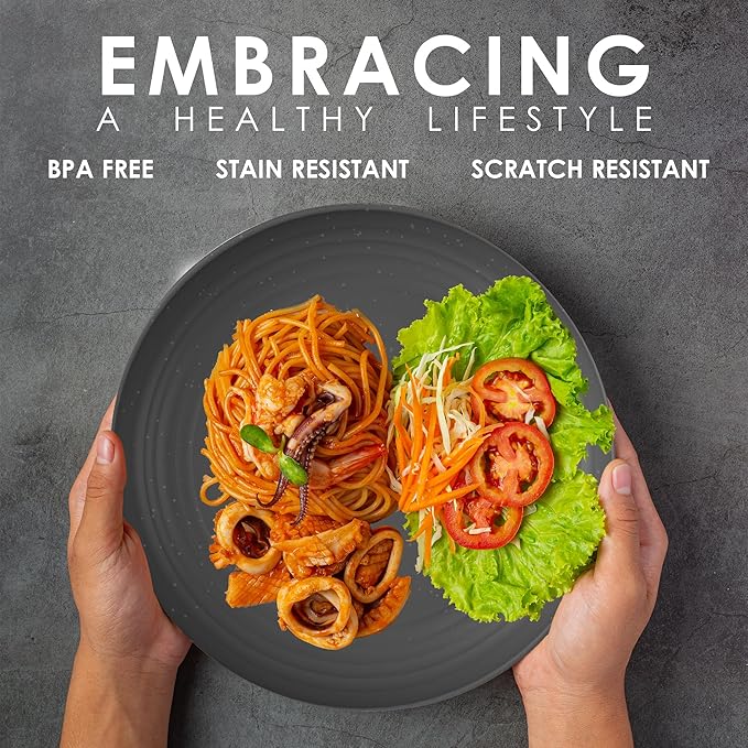 - Stackable Wheat Straw Plates : Our 10 inch dinner plates set of 8 are unbreakable plates that keep your countertop mess free & ideally designed to replace plastic plates reusable