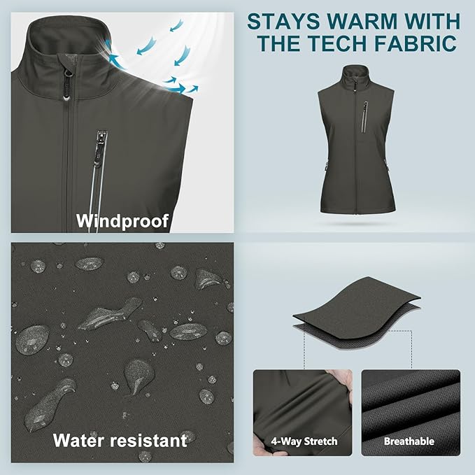 - WINDPROOF & LIGHTWEIGHT: This 33,000ft softshell vest for women is crafted with windproof lightweight fabric that keeps you warm and dry.