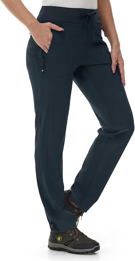 • Adjustable drawstring waistband for a custom fit: These travel pants feature a wide elastic waistband with a drawcord, allowing you to adjust the fit to your liking. The slim fit and 4-way stretch fabric ensure maximum comfort and freedom of movement during any outdoor activity.