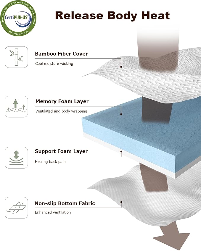 - [STAY COOL ON ROAD TRIPS] - OEKO-TEX (17.HCN.13316) certified bamboo rayon cover wicks 3x faster than cotton + open-cell foam structure reduces heat buildup during summer travels. Machine washable for easy RV maintenance.