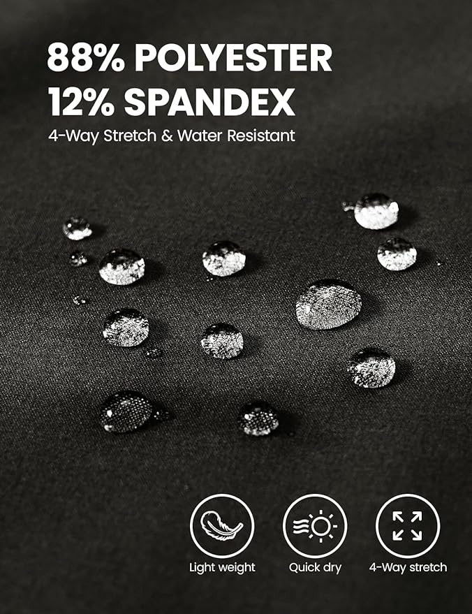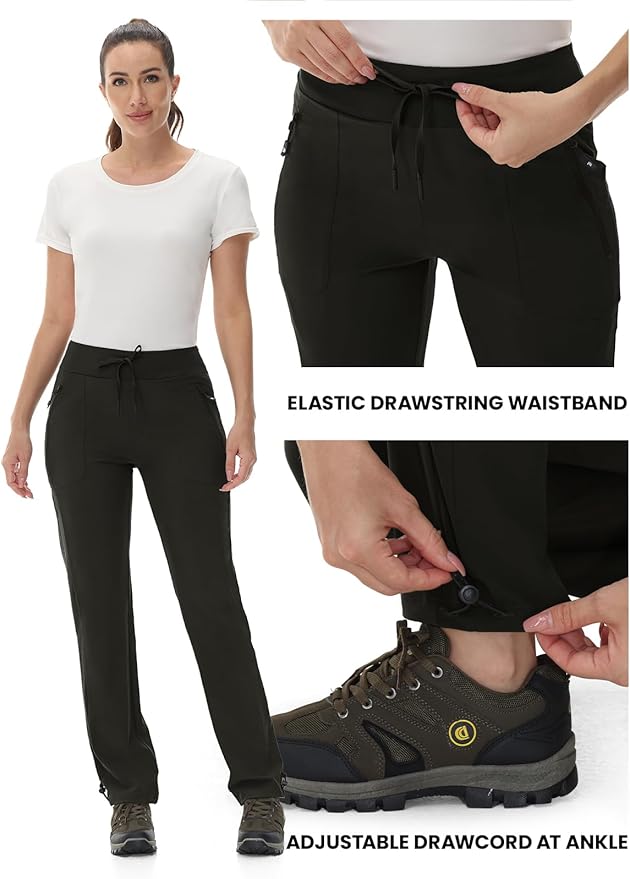 • Adjustable drawstring waistband for a custom fit: These travel pants feature a wide elastic waistband with a drawcord, allowing you to adjust the fit to your liking. The slim fit and 4-way stretch fabric ensure maximum comfort and freedom of movement during any outdoor activity.