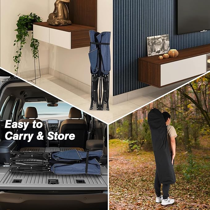 - Foldable & Portable: No eatra tools are needed to install the camping cot. You can open it within 10 seconds. Easy to fold when not in use. You can fold it in the equipped storage bag, then place it anywhere without occupying sapce.