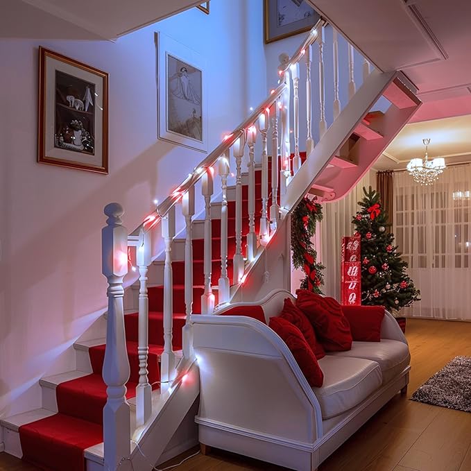 - Red and White Battery String Lights: Each 33ft String lights with 100 super quality LEDs. The red and white battery lights use ultra-high intensity LEDs for soft and bright lighting to create a delighted, joyful, unique atmosphere for party, Christmas, birthday, family dinner or wedding, outdoors and indoors. In addition, the String lights with battery design greatly improves the portability of the fairy lights. Light up the night with a cool glow and perfect to add ambiance