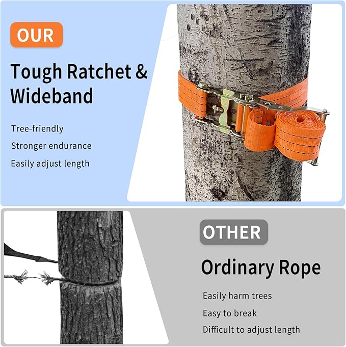 - 【Easy to Setup & Adjust】It's much easier to adjust the length by simply adjusting the straps on the ratchet than the common double hammock. Because the straps we use are wider than ropes, the damage to the trees can be minimized. The outdoor hammock is secured by beefy ratchets and straps that can be built by single person without the need for perfectly spaced trees or flat ground