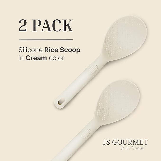 Silicone Rice Paddle Set – 2-Piece Set of Spoon Spatulas for Non-Stick Cookware – Kitchen Tools and Accessories with Comfortable Handles, Heat-Resistant Utensils for Cooking and Baking – Cream