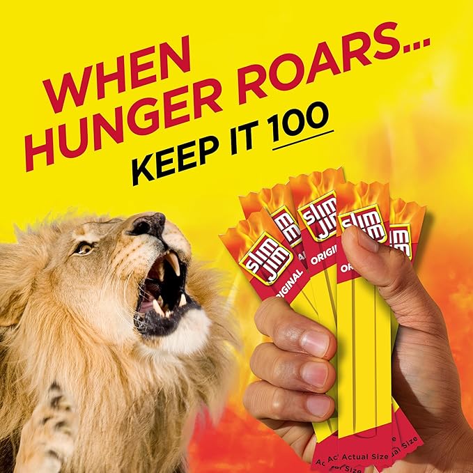 Slim Jim Smoked Meat Sticks, Original Flavor, 6g Protein Per Serving, Snack Size, Lunchbox Snack, 0.28 oz. (100 Count)