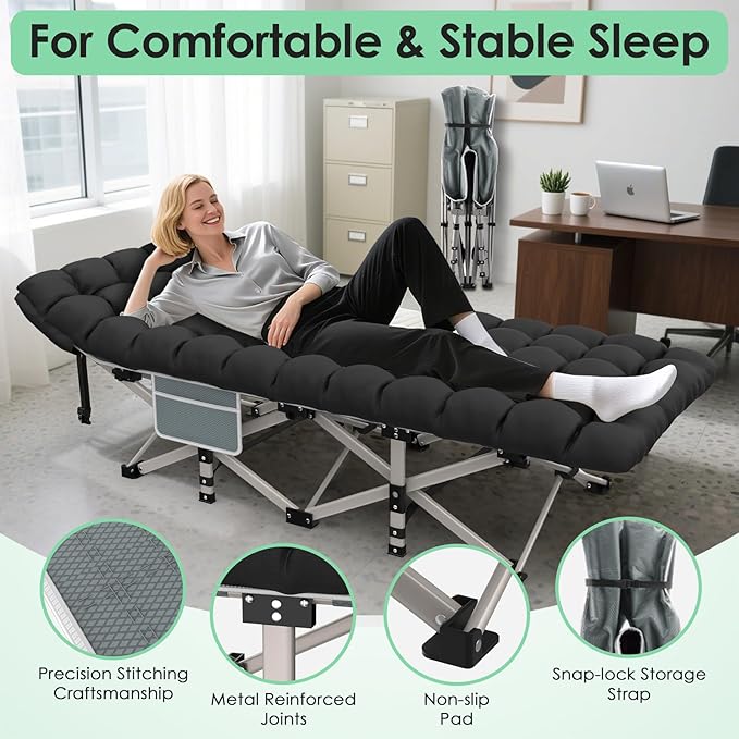 Suteck Camping Cot, Folding Camping Cot Bed for Adults Sleeping 1200D Double Layer Oxford Portable Folding Outdoor Cots for Camping W/Soft Pad Carry Bag for Home Office Nap Beach Travel