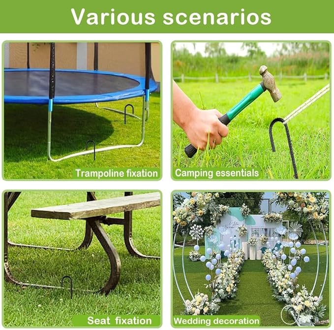 - 【Multiple Scenes】: Our rebar stakes are built to withstand a variety of outdoor elements, perfect for stabilizing your tent, trampoline, dog fence, deer feeder, outdoor water pipe, keeping you stable on any adventure.