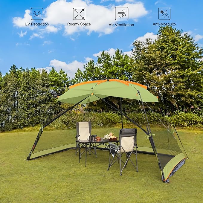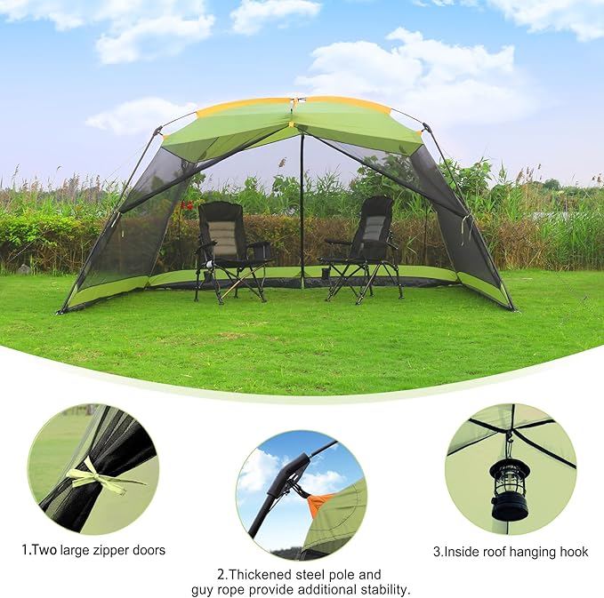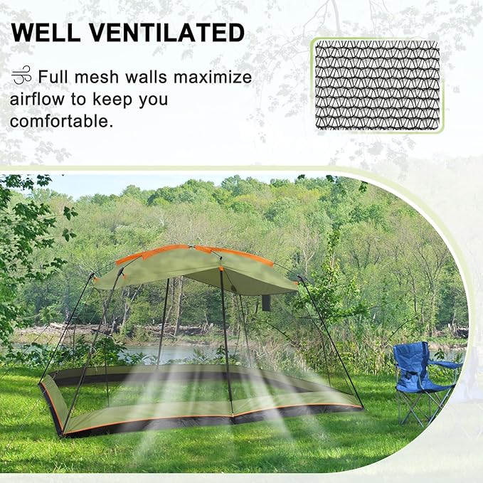 Hyper Venture Screen House 13x9 FT 4 Mesh Walls Canopy Tent Camping Gazebo Shelter for 6-8 People Outdoor Party Activities, Green