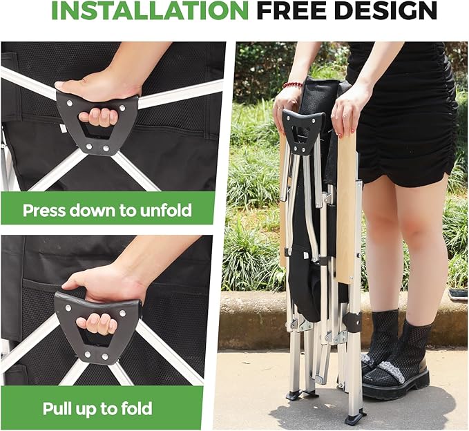 - PORTABLE&INSTALLATION FREE: Unlike traditional folding chairs, our compact camping chair eliminate the complicated installation steps and adopt a quick opening bracket design, allowing for easy and efficient camping experience, making travel easier and more comfortable. When not in use, it can be folded into smaller sizes for easy storage and transportation. The best part is that this outdoor chair with a storage bag for easy carrying.