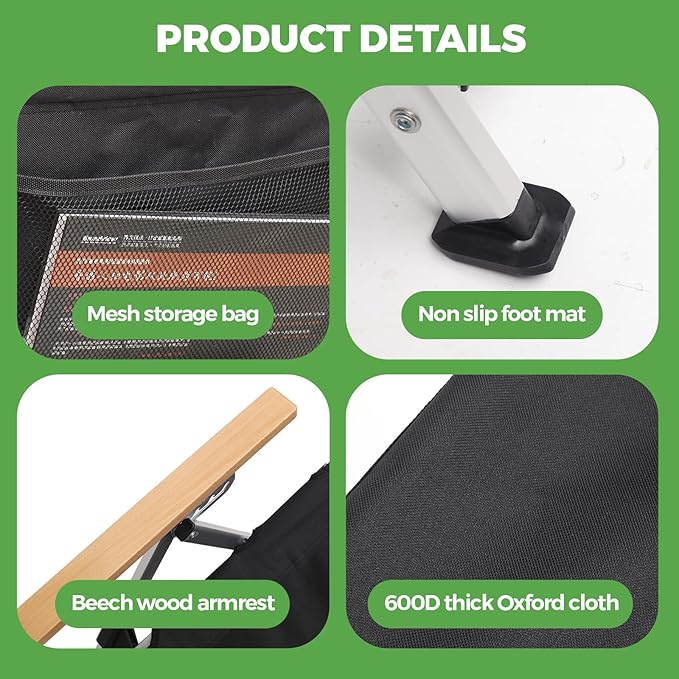 - THICKENED OXFORD CLOTH: Our outdoor folding chairs are made of 600D thickened Oxford cloth fabric, which has high resistance and reinforced load-bearing positions, with strong tear resistance. It can be waterproof while also having a certain degree of breathability, equipped with everything you need to achieve maximum comfort and enjoyment.