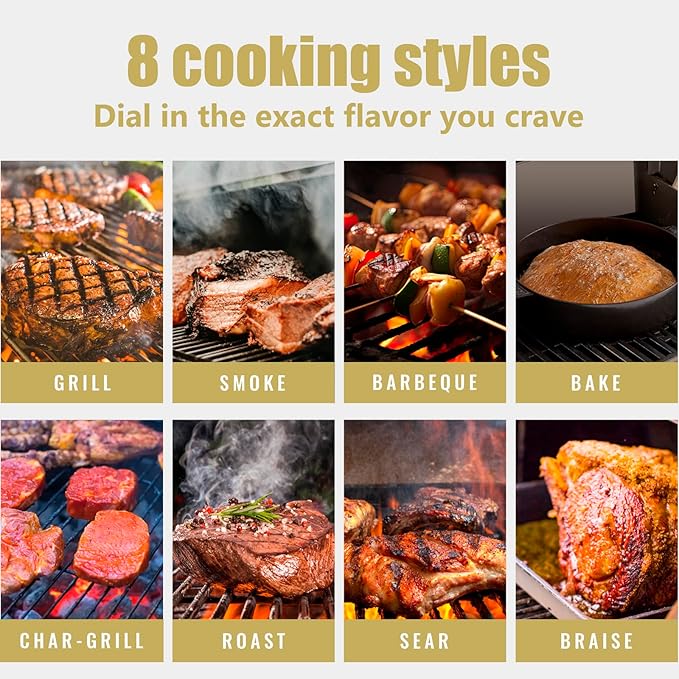 - 【Grill 12 burgers while smoking ribs】: all in one session. Master 8 functions (BBQ/bake/roast/sear) with precision heat control for steak nights, pizza parties, or slow-smoked pulled pork