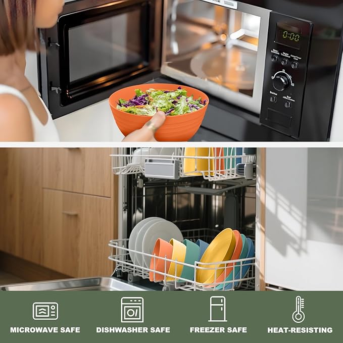 - PREMIUM WHEAT STRAW MATERIAL: The kids plates and bowls sets are made of wheat straw fiber which is reusable and BPA free. And they won't affect taste or smell of your meals. Our wheat straw dinnerware sets combine the look of classic tableware and advantages of wheat straw material