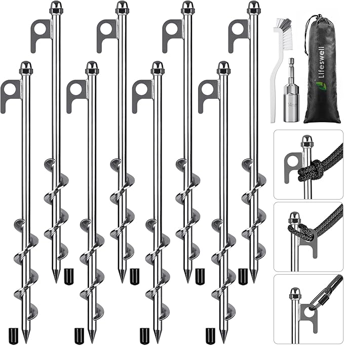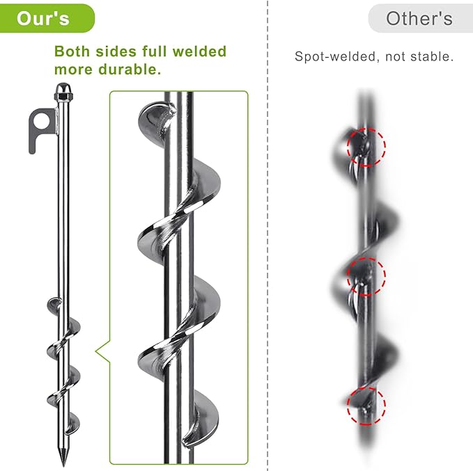- 【Easy to Install and Remove】You can easily screw these spiral anchor into the ground with a drill and screw them out again when you don’t need them. You can install them in a few minutes, saving your time and effort