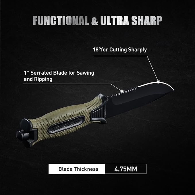- Fixed Blade Knife: super sharp fighting knife, stronger than any hunting knife or bow and arrow knife. Total length: 9.84 inches; Blade length: 4.68 inches; Weight: 0.4 lb. It is equipped with a high-strength PP material sheath, which is easy to carry.