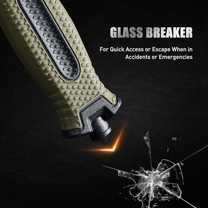 2pcs 10" Fixed Blade Tactical Knives with Sheath and Clip, Survival Full Tang Non-Slip Handle Knife for Camping, Hunting, Adventure, Outdoors, EDC, Green Handle