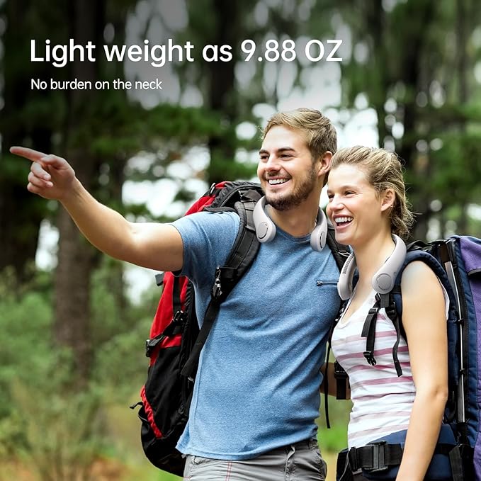 - Lightweight & Hands-free Design: Weighing just 9.88 ounces, this improved wearable neck fan allows for extended use without strain. Its hands-free design keeps you comfortable during activities like hiking, gym workouts, or cycling