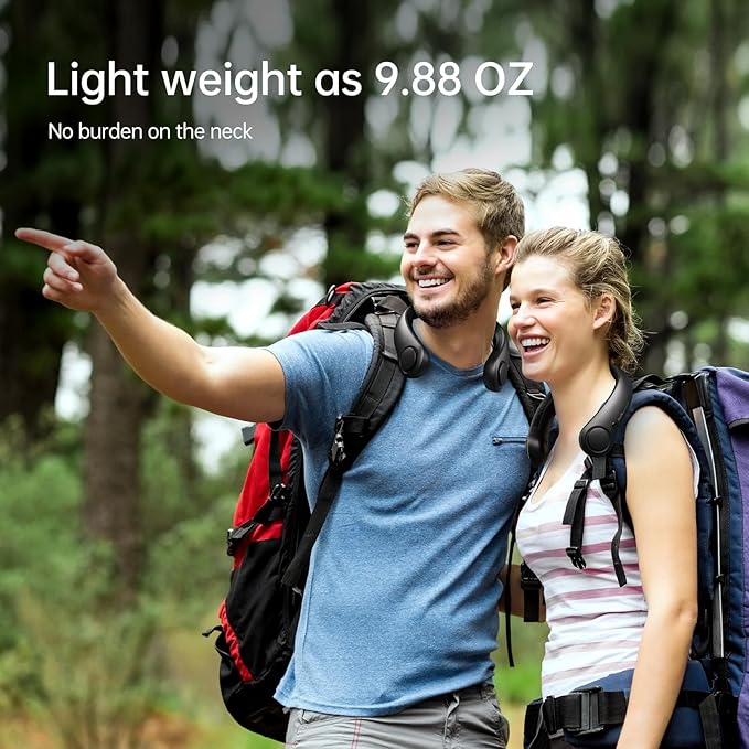 - Lightweight & Hands-free Design: Weighing just 9.88 ounces, this improved wearable neck fan allows for extended use without strain. Its hands-free design keeps you comfortable during activities like hiking, gym workouts, or cycling
