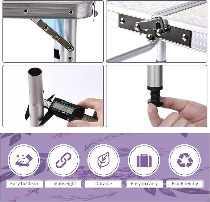 - Sturdy and Stable:Our sturdy camping table comes with a robust 5 mm MDF tabletop, thick aluminum alloy frame, U-shaped side supports, and secure locks, it guarantees durability and stability. Designed to withstand the demands of any outdoor activity