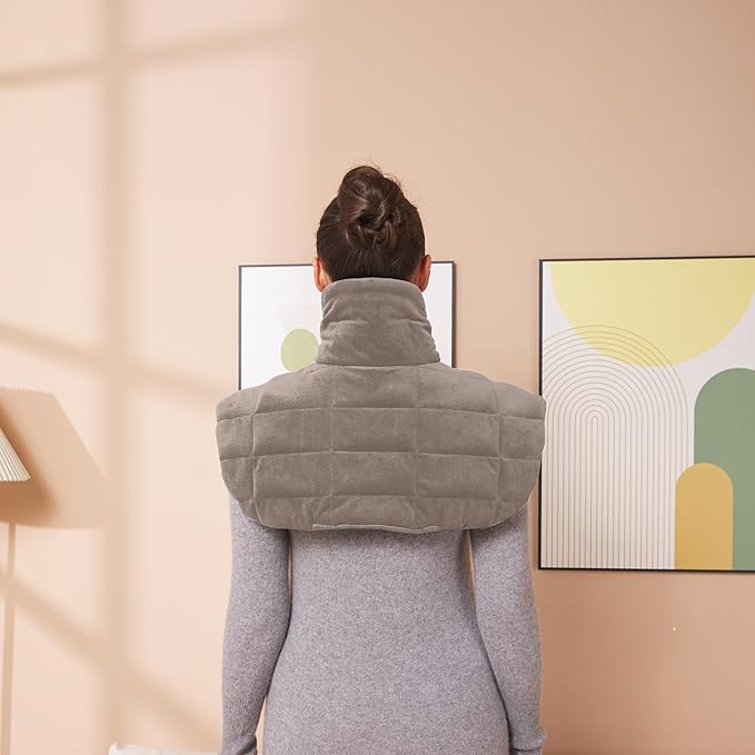 Ambershine 19''x24'' Weighted Neck & Shoulder Heating Pad, 2.5lbs with 12 Temperature Settings& 4 Auto-Off Timers, Pain Relief for Neck/Shoulder/Back, Christmas Gifts for Women Men Mom Dad(Light Tan)