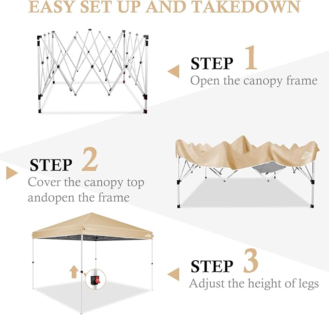 - 【EASY TO INSTALL】Open the frame and put the fabric on it, and then adjust the height to shade. There are three adjustable heights, you can adjust the height.