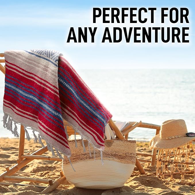 - VERSATILE HANDWOVEN BLANKETS: These serape blankets stay true to their heritage as each blanket is beautifully handcrafted with slight variations in size and weight as part of the timeless look and feel. Place it on the wall as part of your western home decor, or use it as a yoga blanket, car blanket, picnic blanket, saddle blanket, beach blanket, and much more.
