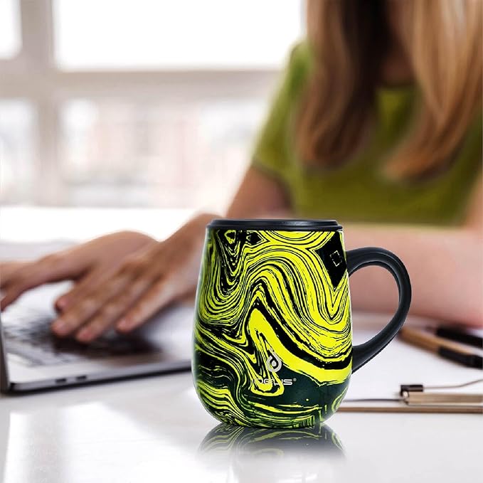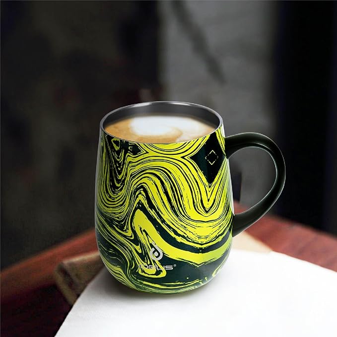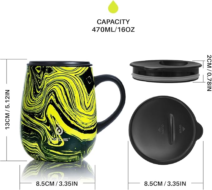 Ideus 16 oz (470 ml) Insulated Coffee Mug with Handle and Lid, Double Wall Stainless Steel Vacuum Thermal Coffee Mug, Travel Coffee Cup Thermal Cup for Home and Office (Yellow Zebra)