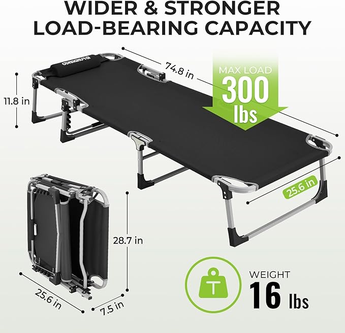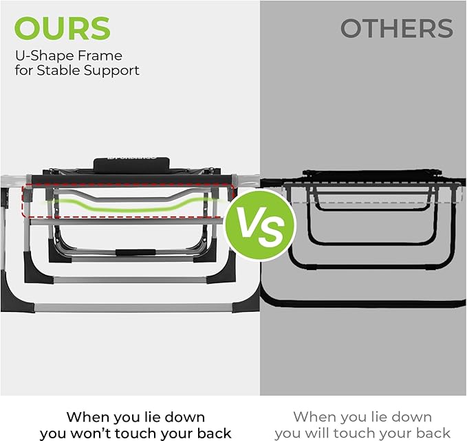 - Extra-Wide & Heavy-Duty Support – This extra-wide portable tanning chair measures 74.8" x 25.6" x 11.8", offering generous space for full-body relaxation. The upgraded Q195 steel frame and four U-shaped support legs with anti-slip feet ensure rock-solid stability—capable of supporting up to 300 lbs with ease. Ideal as a lounge chair for adults who need more room and stronger support.