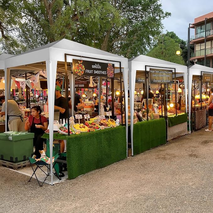 - 【WIDE USAGE】This party tent is perfect for commercial or recreational use like party, wedding, graduation, flea market, small business, outdoor events, patio leisure, backyard, camping, picnics, sporting events, arts and crafts tables and much more