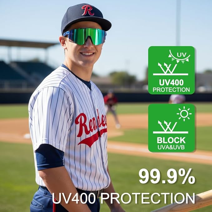 - LIGHTWEIGHT DESIGN:Our sports sunglasses made of durable and strong frame and uv protection lens lightweight design,weighs only 25 g that you can’t feel you was wearing it;The frame can bend under pressure and contour your face comfortably;Ideal for usage by motorcycle ,cycling, driving, running, baseball,fishing, racing, golf and climbing, trekking or other outdoor activities